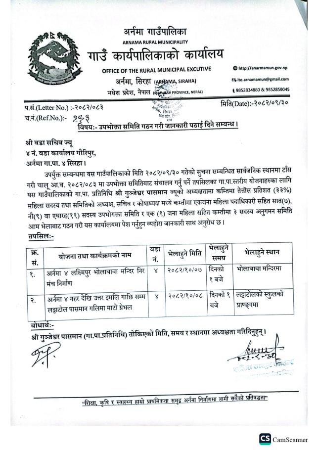 उ.स. गठन सम्बन्धी सूचना ।