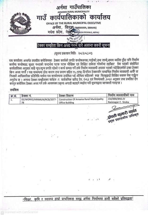 ठेक्का सम्झौता किन अन्त्य नगर्ने बारै अत्यन्त जरुरी सुचना ।