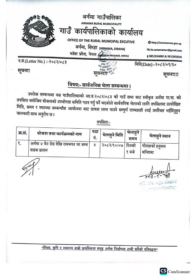 उ.स. गठन सम्बन्धी सूचना ।